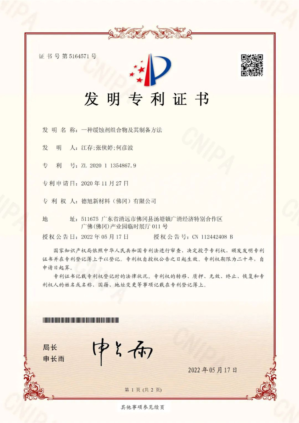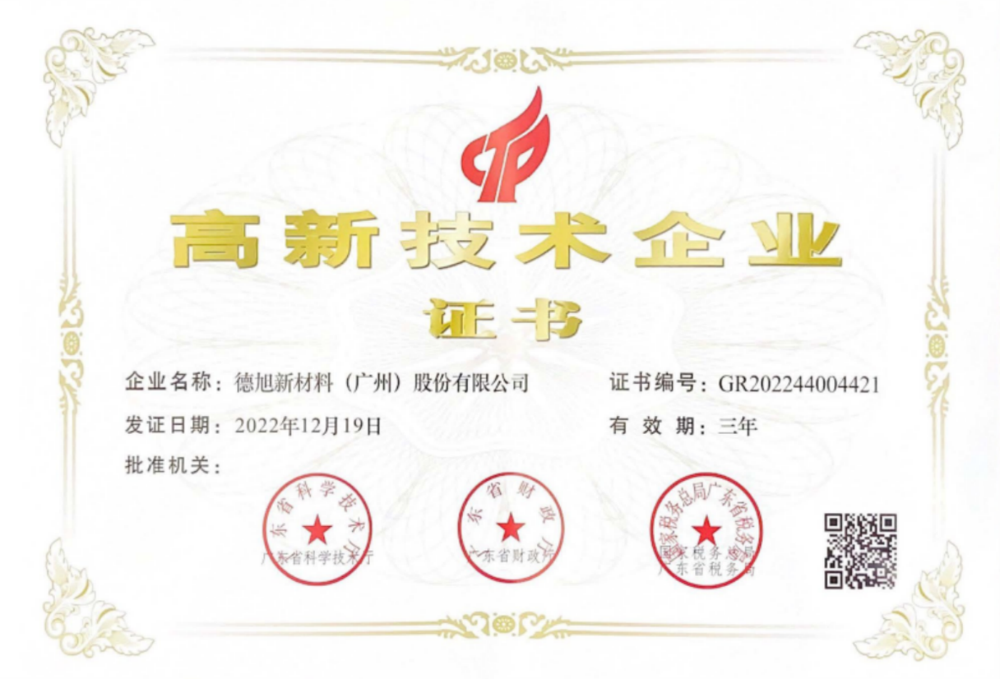 德旭新材料(广州)股份有限公司成立于2012年,坐落于国内新材料领域创新集聚区的广州高新技术产业开发区核心位置——广州科学城,是一家集研发、生产、销售于一体且拥有自主知识产权的专精特新企业。长期专注于金属材料的防腐蚀研究与创新,为汽车与船舶、航空航天、半导体及3C电子、新能源、水性防腐涂料等领域的金属防腐蚀提供产品和解决方案。同时也服务于工业润滑、金属表面处理、工业、商用和民用重油污清洗和益智玩具等行业。公司产品获得BASF(巴斯夫)、HP(惠普)、汉高、美泰、MOOSE、中国船舶、中国机械总院、安集、汇川、三环、晨光等国内外知名企业的青睐。
